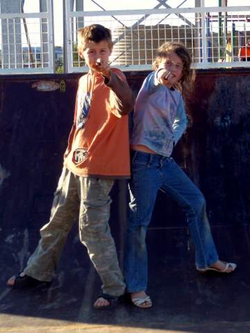 The first is that it is much more affordable to stay in a $2.50 per person campsite operated by the local community than a campervan park. There is also the not-so-small issue that we have more space here. We are camped on a patch of gravel next to the local playground, complete with shelter over it from the hot desert sun. While we were there, they built a skate park that the kids all love to run up and slide down. After the first two weeks, I’d had to throw 7 pairs of pants in the bin because the bums wore threw. We bought the kids a clothe each to sit on when sliding down.