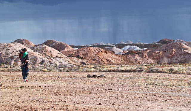 There is also a public noodling pit in the camp ground (noodling is a weird word meaning to fossick for opal through the molluck heaps). There is also the piles of pebbles and dirt that are dotted around the campground. They will be used to make some of the dirt roads, as only the main street is bitumen at present. In the meantime, my kids think that piles of dirt and rocks are better entertainment than any other options. Maybe 4 or 5 times a week tourists will come in and start searching for opal in the rock piles — sometimes even washing the pebbles that will be used to make the roads to check if it’s opal!