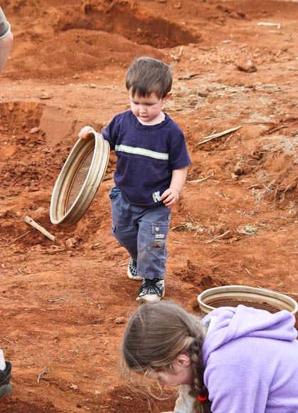 We drove up past the Tropic of Capricorn to Gemtree. The next morning at 8.30am we joined the tour out to the gemfields and fossicked for garnets. Dad dug into the hole and washed his soil how the man had demonstrated.Peter, Susan, and Lucy found lots of small pieces on the surface and were content with this so didn’t bother with digging. Mum tried briefly, then lost interest and followed Edmund around.
